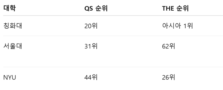 서울대와 비교해보니, 두 대학 모두 세계적으로 손꼽히는 수준이라는 걸 알게 되었죠.